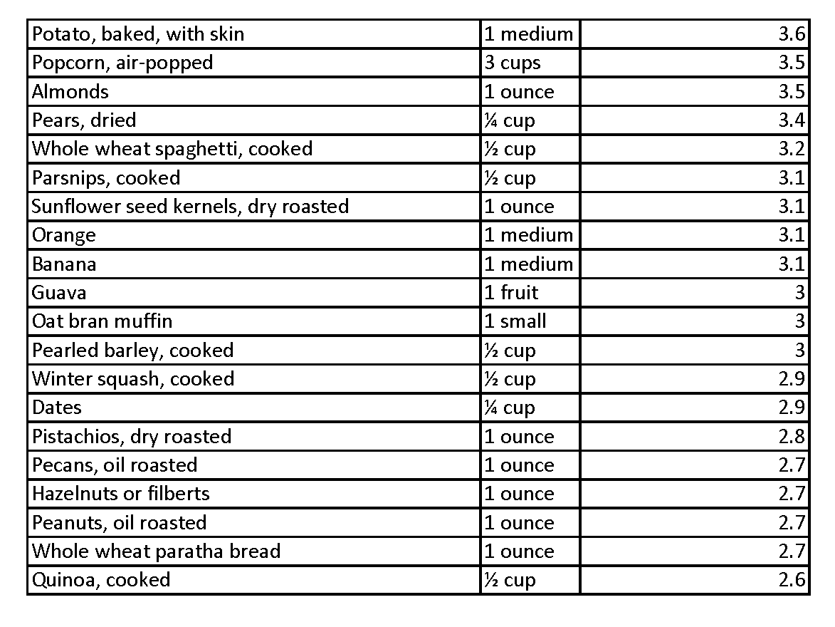 What you must do to increase your intake is to eat more real, whole foods. Below is a table of foods from the USDA that have the most roughage per serving. You can see that many of the top foods are beans (pulses, legumes) or seeds, but even a strict Paleo diet can be filled with nutritious, fibrous foods.